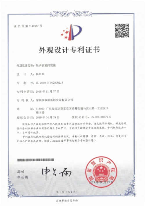 軸承漲緊固定座 電子證書 |